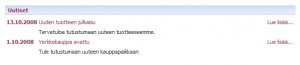 Uusimmat uutiset näkyvät automaattisesti etusivulla, uusin uutinen ylimmäisenä. Voit määritellä uutiselle julkaisu- ja vanhenemisajankohdan. Voit siis kirjoittaa kätevästi esimerkiksi uutisen uudesta tuotejulkaisusta etukäteen ja uutinen alkaa näkyä sivuillasi automaattisesti määriteltynä ajankohtana.
